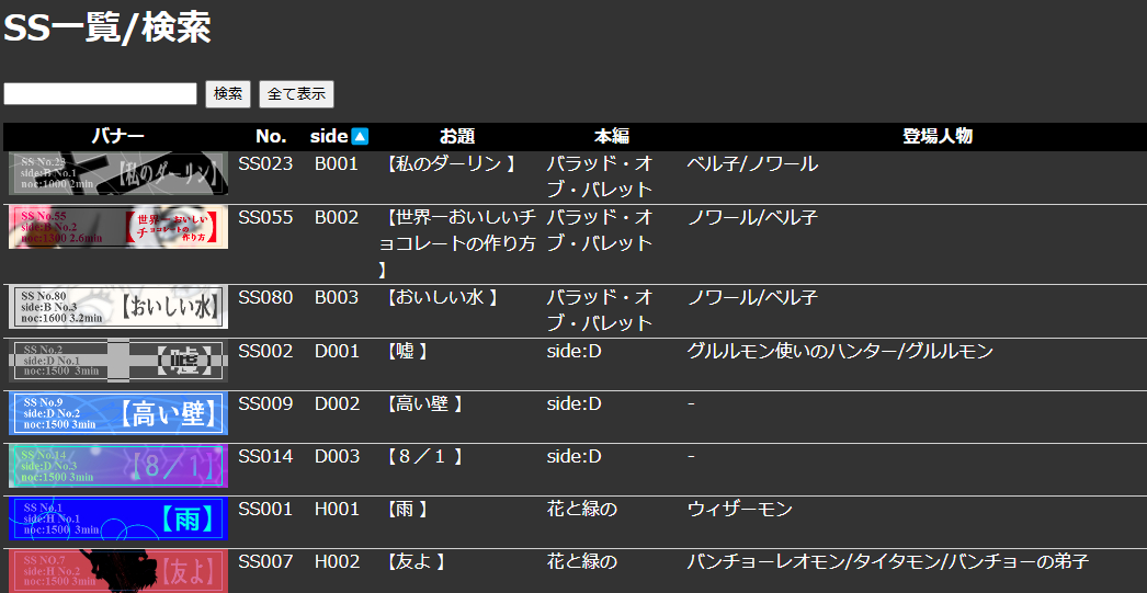 SS検索をどうしようかという話を前回していたのですが、めっちゃいい感じのページのソースを無料公開してくださっている方がおりまして、SS検索にぴったりだったので使わせていただきました。